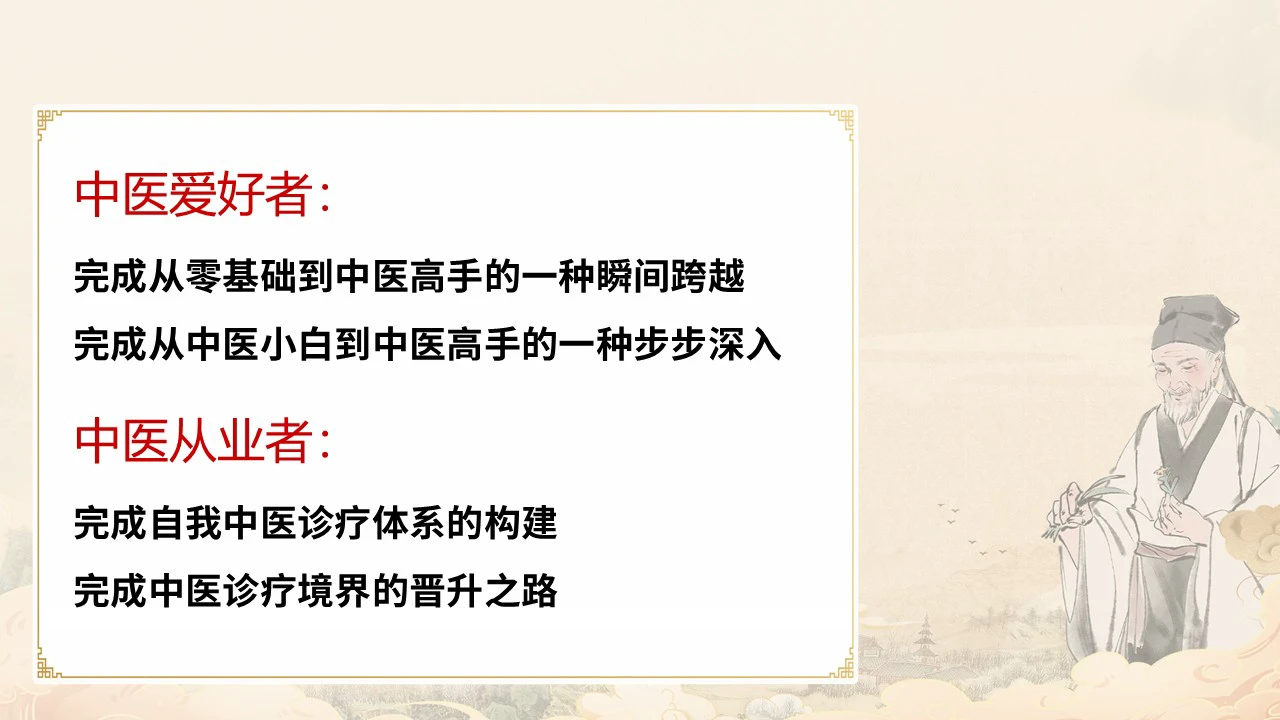 无论是中医小白渴望踏入经方学习的大门,还是从业者希望构建完善的经方理论体系、提升诊疗水平,“四级疗法经方思维实战” 课程都能满足需求。它的经方体系不仅包含《伤寒论》,还囊括众多名家古籍,学完该课程,就相当于掌握了中医的半壁江山。