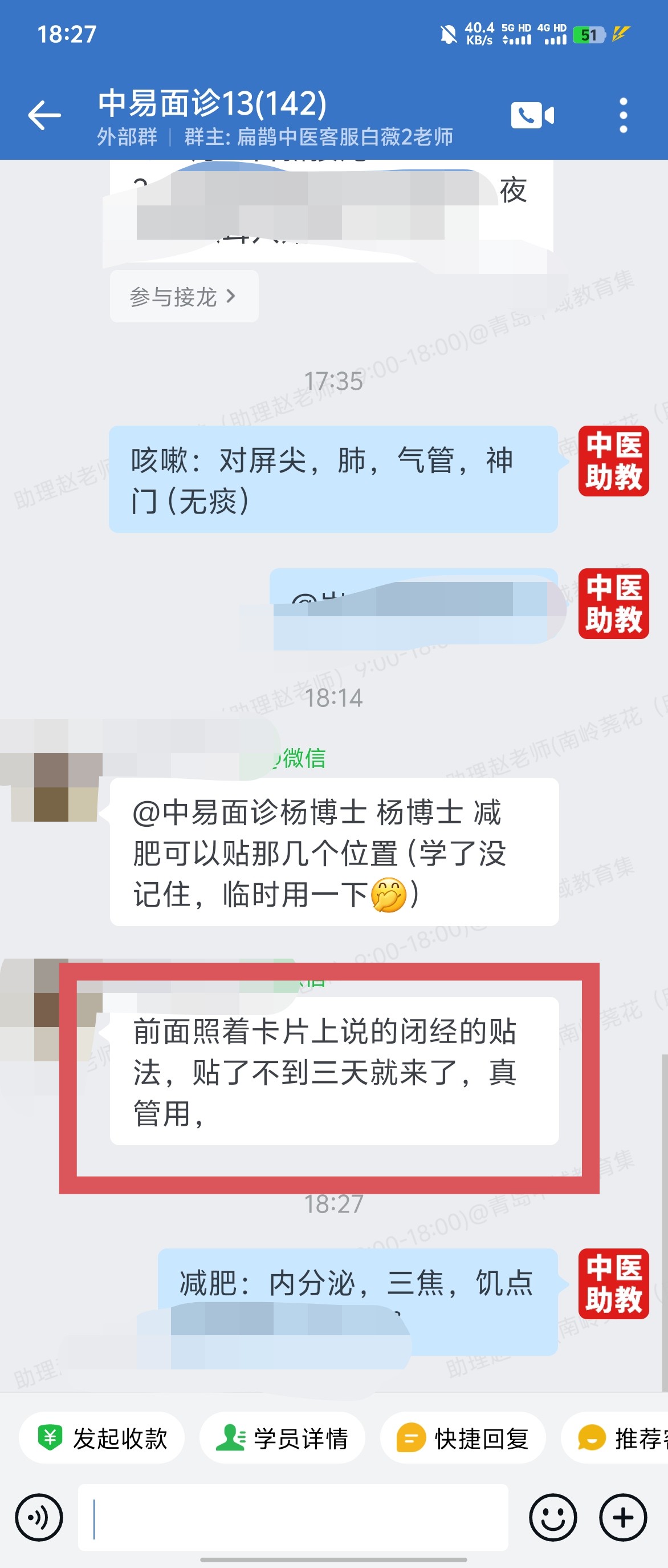 学员患有闭经,按照课程里闭经的耳穴卡贴贴上后,月经三天就来了,耳穴方法太管用了!
